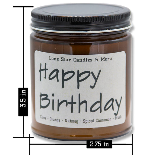 Autumn Cider, Lone Star Candles & More's Premium Hand Poured Strongly Scented Soy Wax Gift Candle, Fall Spices, Sweet Musk, & A Hint of Pineapple, US Made in Texas, Amber Glass Jar 9oz Happy Birthday