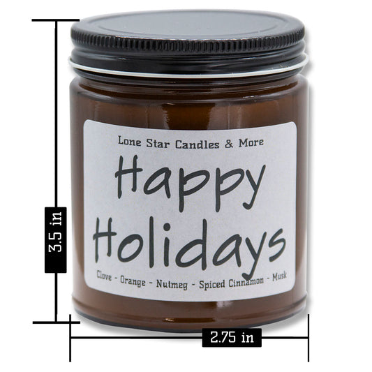 Autumn Cider, Lone Star Candles & More's Premium Hand Poured Strongly Scented Soy Wax Gift Candle, Fall Spices, Sweet Musk, & A Hint of Pineapple, US Made in Texas, Amber Glass Jar 9oz Happy Holidays