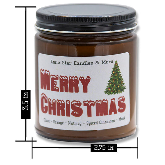Autumn Cider, Lone Star Candles & More's Premium Hand Poured Strongly Scented Soy Wax Gift Candle, Fall Spices, Sweet Musk, & A Hint of Pineapple, US Made in Texas, Amber Glass Jar 9oz Merry Christmas